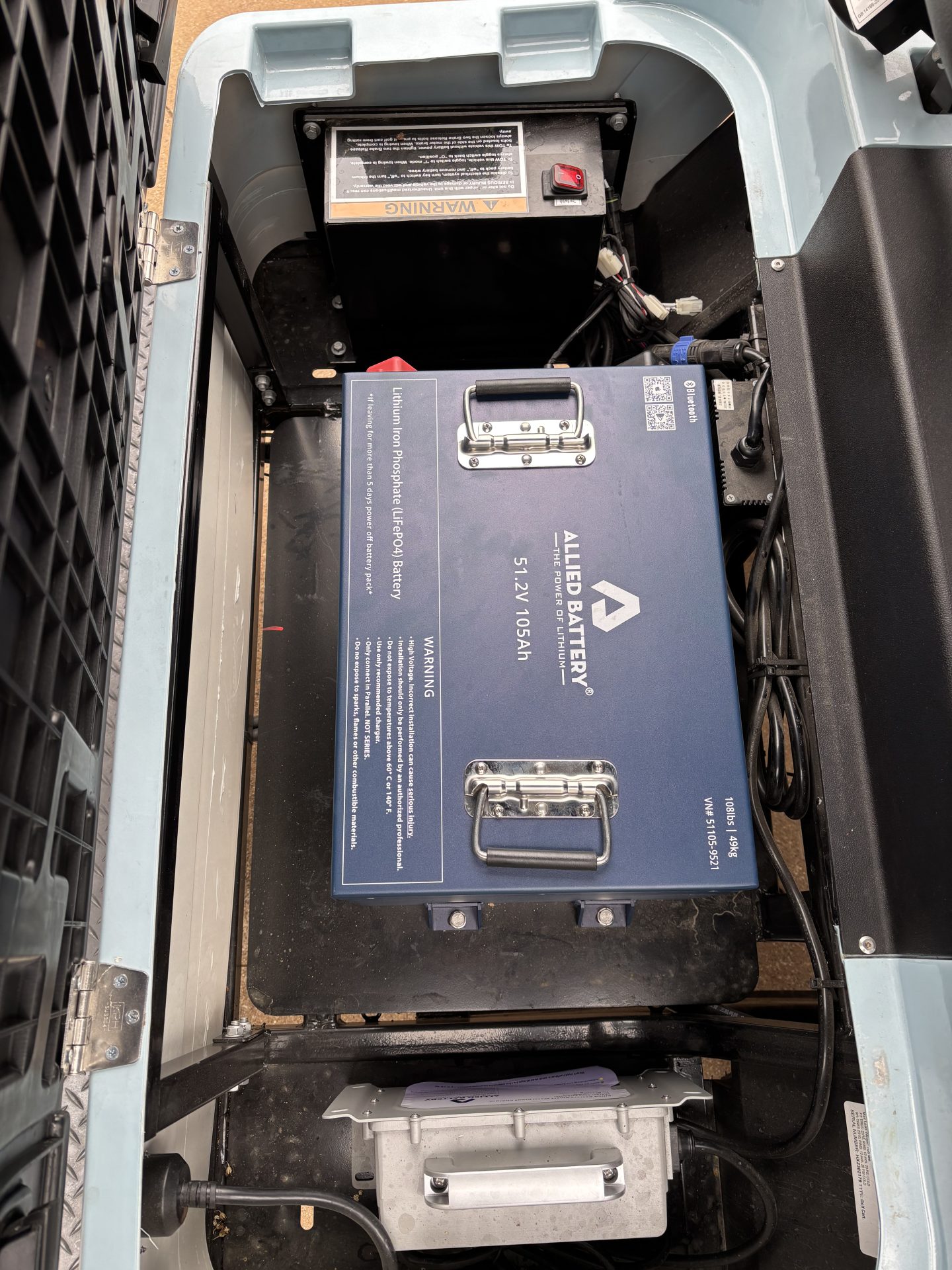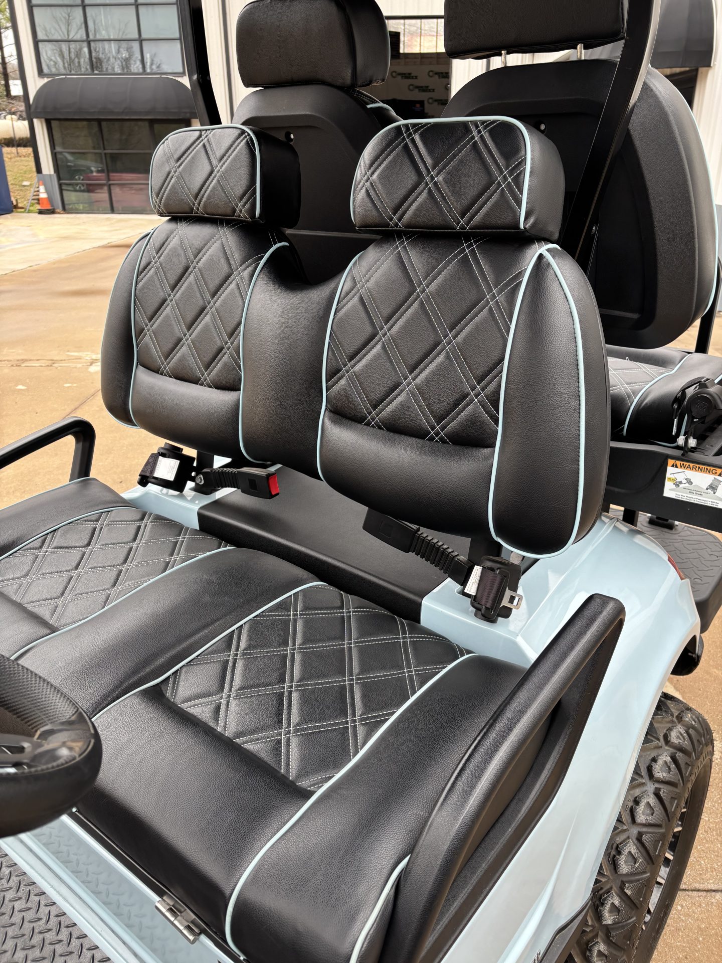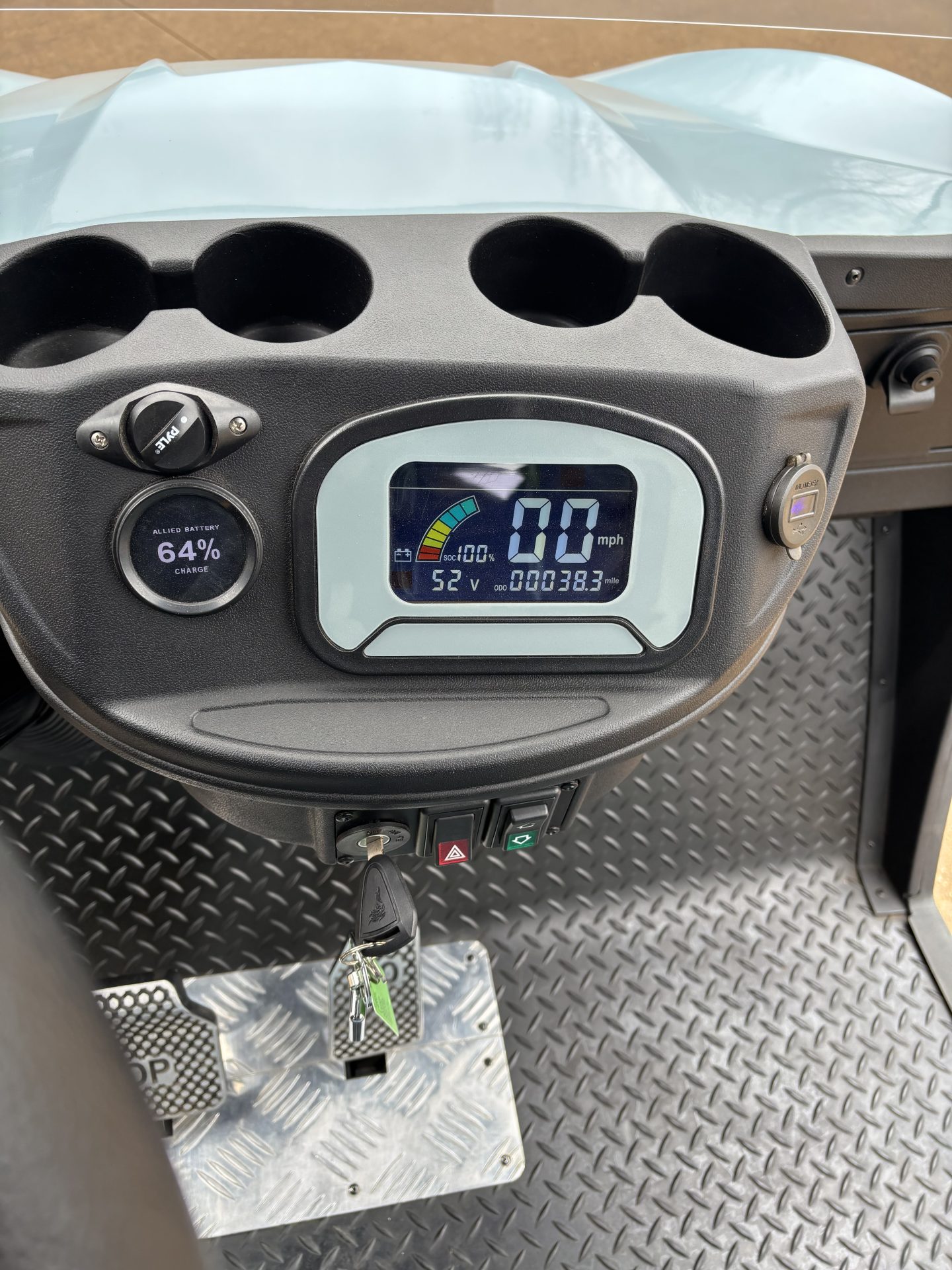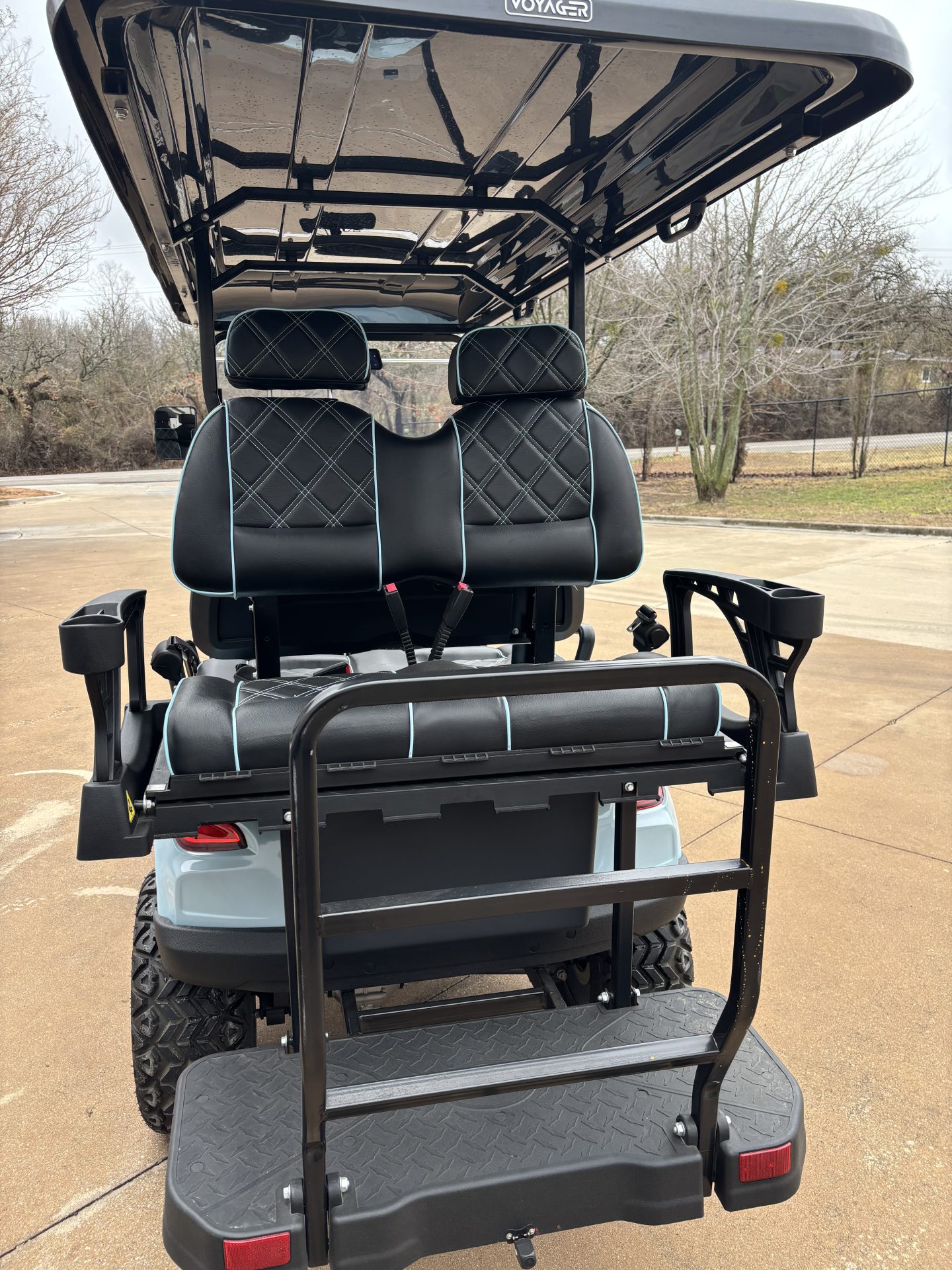 Voyager Explorer 4-Passenger Lifted Cart features: 2-Year Full Coverage Warranty (includes Parts AND Labor) Allied Lithium 48V + 105Amp-hour Batteries (includes 8-year manufacturer's warranty) Premium Metallic or Matte Paint Color Premium Contoured Hand-Stitched Seats 12" Wheel Packages Gussi Custom Steering Wheel Multimedia Sound System Reverse Camera Ice Chest/Insulated Storage Storage in Dash Onboard Charger for easy access and maintenance AC Power for Increased Torque Brush Guard Side Mirrors with Turn Signals USB Port Retractable Seatbelts Flip Down Rear Seat with Cupholders Turn Signal + Horn + Brake Lights LED Head & Tail Lights Spacious & ergonomic body/seating style