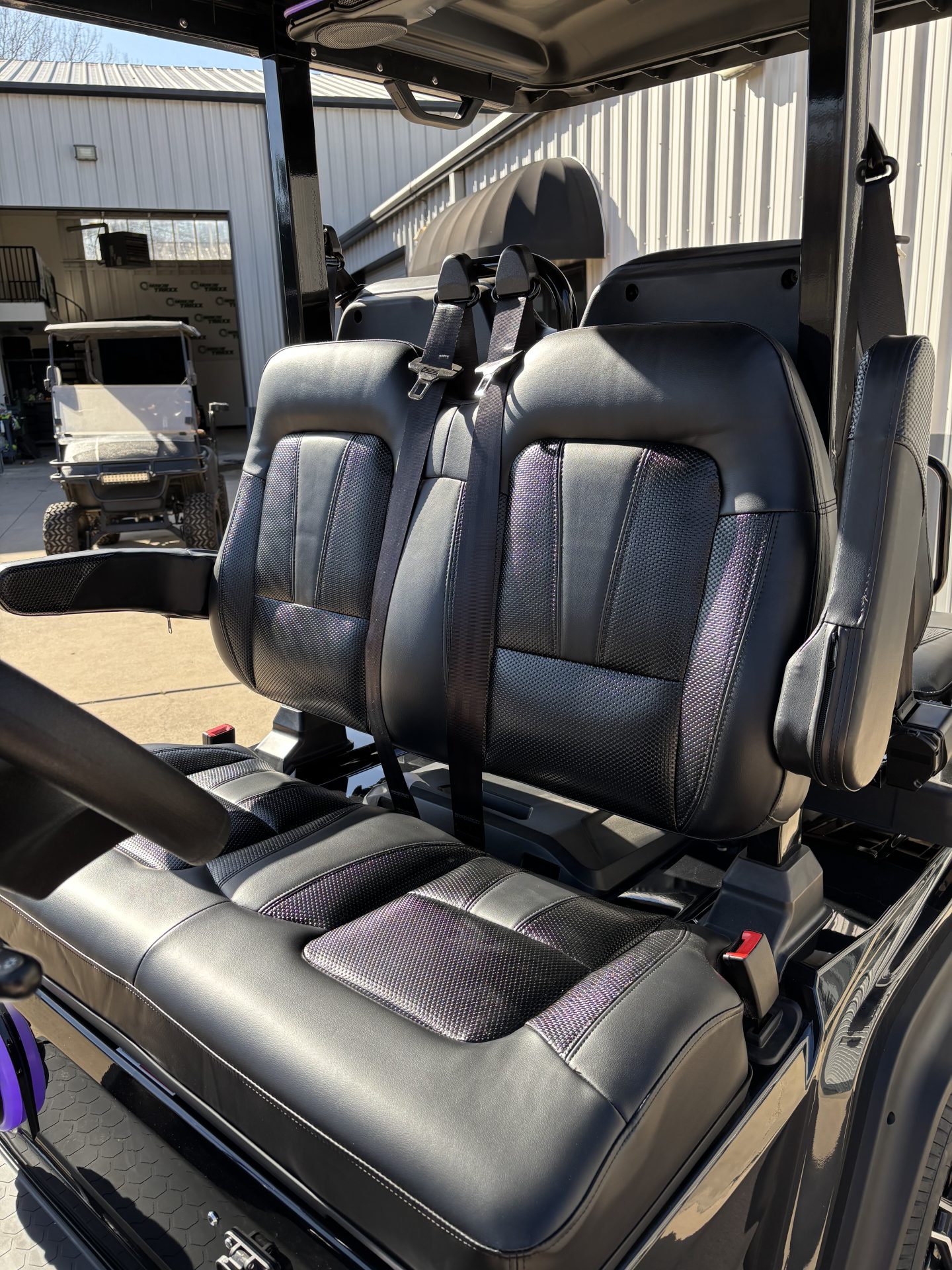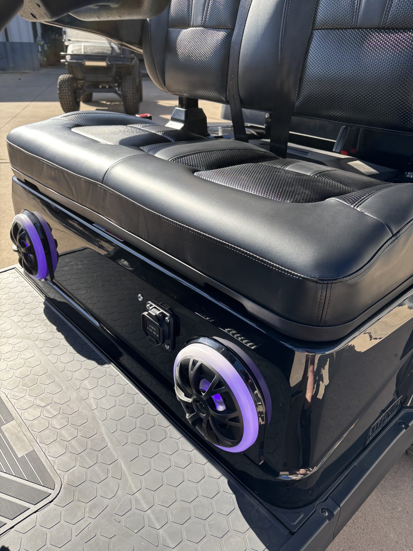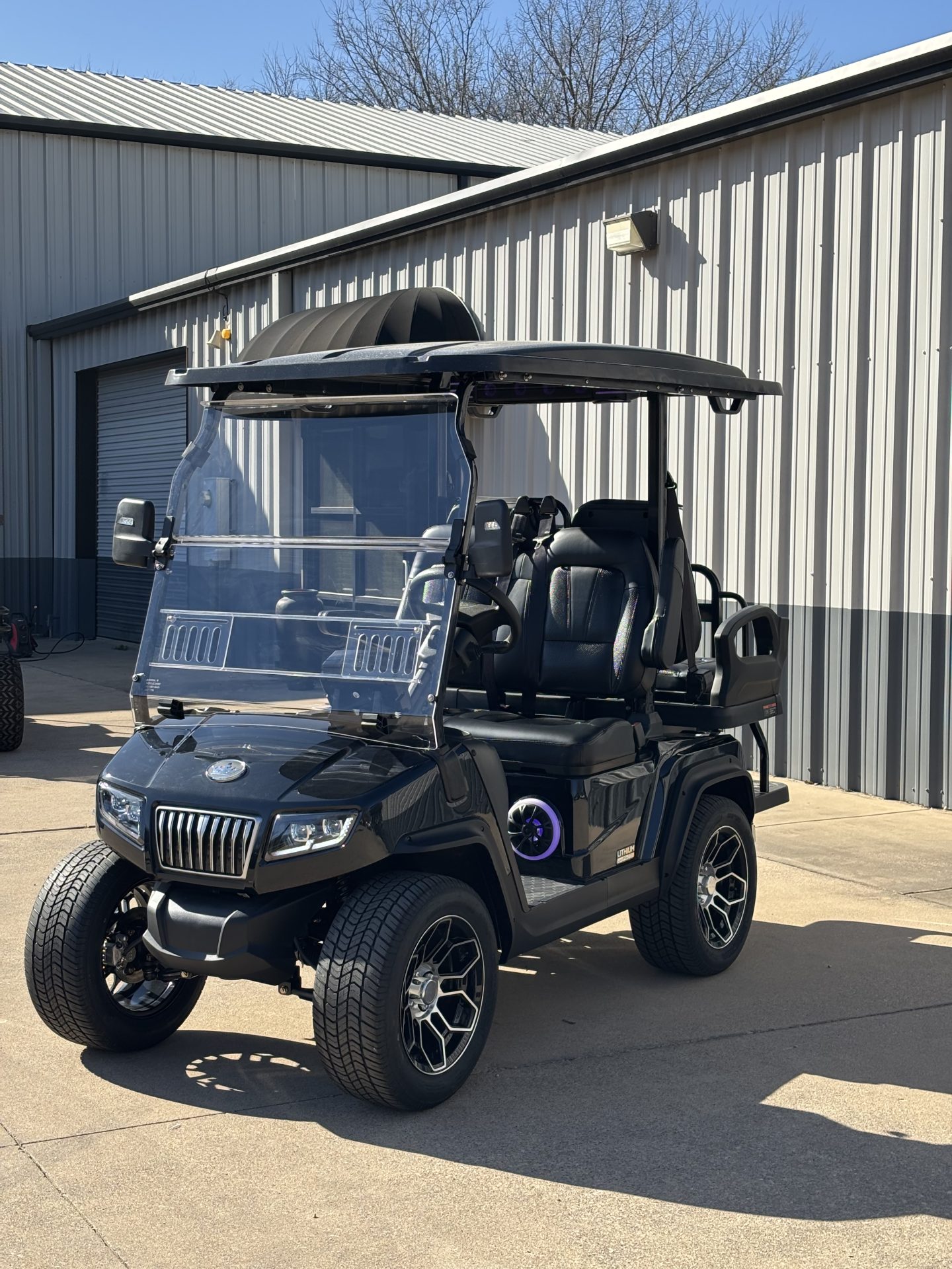 ●8-YEAR WARRANTY ●NO MAINTENANCE ●ULTRA SAFE SPEC. ● 121.3×55.8×80.5 inch ● Adjustable Steering Column ● Cuboid Evolution Sound Bar ● Two-tone Luxury Seats ● 3-Point Seat Belts For Every Seats ● Multi-functional Dashboard ● Rear Storage Compartment ● EM Brake ● LED Lighting ● Foldable Windshield With Slidable Sub-windows ● Automobile Style Rear Bumper ● 14x7” Aluminum Wheel/225/55r14’’ Radial Tire ● Automotive E-coat Chassis ● 9” Multi-functional Touchscreen (Carplay, Speed display, Driving Gear indication, Lights, Odometer, Radio, Music, Bluetooth Connection, Back-up camera image display.,etc) POWER ● 48V Lithium Battery ● 6.3KW Motor With EM Brake ● 400 A, AC Controller ● 25A On-board Charger Adjustable Steering Column 9’’ Touchscreen with Carplay Compatibility Rear Armrest With Built-in Control Switches Illuminated Storage Compartment Speakers Rear Handrail with Optional Towing Hitch Receiver Storage Compartment Cuboid Evolution Sound Bar Powered Rear View Mirrors Slideable Air Vents Rear Storage Compartment Radial Tire