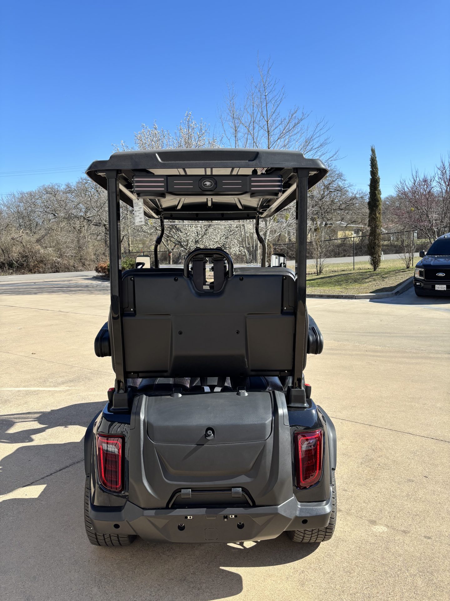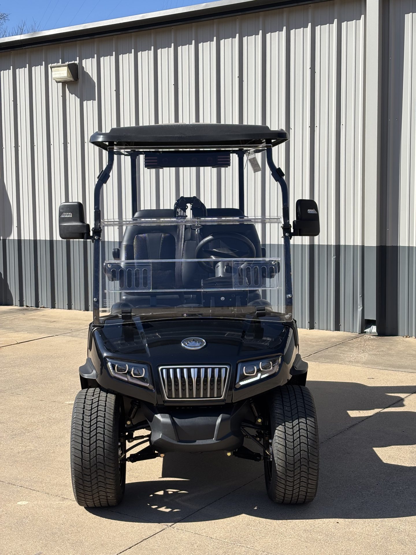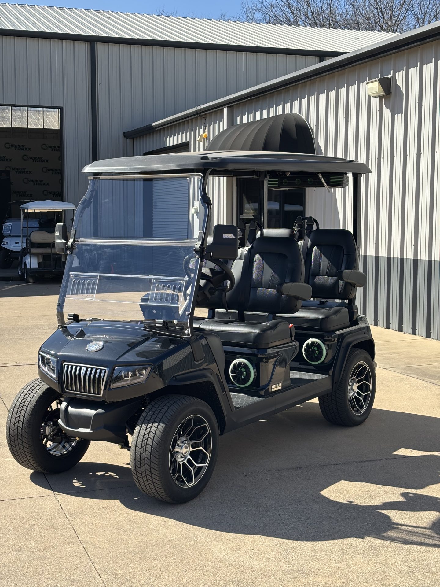 ●8-YEAR WARRANTY ●NO MAINTENANCE ●ULTRA SAFE SPEC. ● 114.6×55.8×79.5 inch ● Adjustable Steering Column ● Cuboid Evolution Sound Bar ● Two-tone Luxury Seats With Foldable Armrests ● Seat Back Cover With Cuphold / Handrail, Charging Port, Storage Pocket .,etc ● Multi-functional Dashboard ● Rear Storage Trunk ● EM Brake ● LED Lighting ● Foldable Windshield with Slidable Sub-windows ● Automobile Style Rear Bumper ● 14x7” Aluminum Wheel/225/55r14’’ Radial Tire ● Automotive E-coat Chassis ● 9” Multi-functional Touchscreen (Carplay, Speed display, Driving Gear indication, Lights, Odometer, Radio, Music, Bluetooth Connection, Back-up camera image display.,etc) POWER ● 48V Lithium Battery ● 6.3KW Motor With EM Brake ● 400 A, AC Controller ● 25A On-board Charger Adjustable Steering Column 9’’ Touchscreen with Carplay Compatibility Control Switches Storage Trunk Illuminated Speakers Optional Golf Bag Holder Storage Compartment Cuboid Evolution Sound Bar Powered Rear View Mirrors Slideable Air Vents Optional All-Weather Enclosure Radial Tire