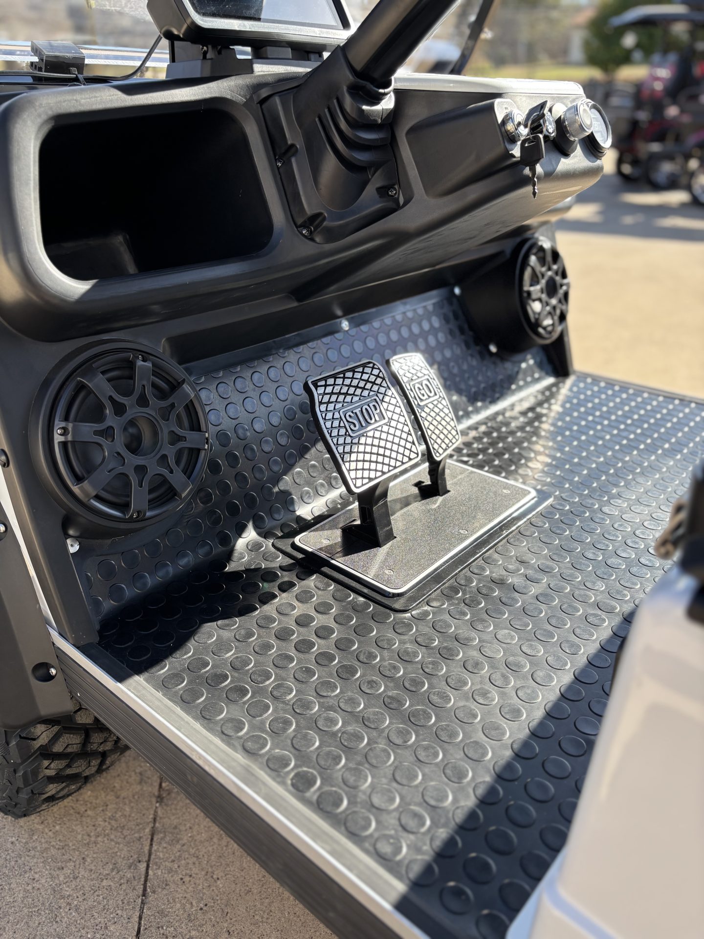ITHIUMBATTERY ●8 YEAR WARRANTY ●NO MAINTENANCE ●STEEL PACK BODY & CHASSIS TPO injection moulding front and rear body DIMENSIONS Forester 4 plus: 117"x55"x83" POWER 48V Lithium battery 48V 6.3KW AC motor 400 Amp Evolution AC controller 25A Evolution on-board charger LSV Package 1.MSO 2.VIN number 3.License plate light 4.Reflectors 5.DOT foldable acrylic windshield FEATURES ● Two tone seat ● Color matched Dash with four cup holders / cell phone holder ● Plastic rear seat kit with storage & cup/cell phone holders ● 14X7"Aluminum Wheel/23X10-14 SilentTire with Offroad Thread ● USB ● 9 inch touchscreen with back-up camera (Radio,Music,Movie,Speedometer,Bluetooth,Back-up camera, Car App connetion) 9 inch touchscreen with back-up camera Color matched Dash with four cup holders/cell phone holder 14" Color Matched Silent Tire with Offroad Thread Car Stereo Plastic rear seat kit with storage & cup/cell phone holders