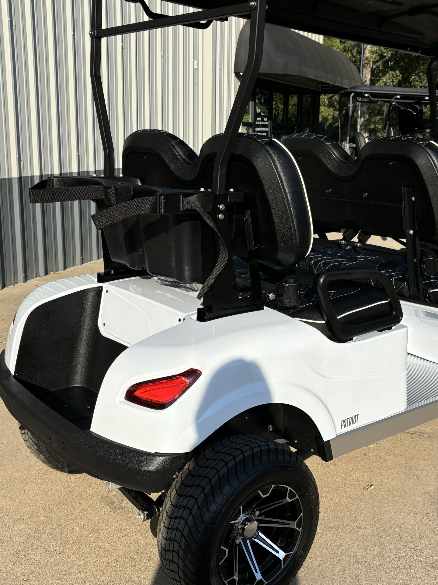 This Luxury Voyager Patriot is everything you're looking for in a golf cart! This Lifted 6-Passenger golf cart includes 72 volt-105 amp hour ECO Lithium Batteries, and the following features: 2 Year Full Coverage Warranty (includes Parts AND Labor!) 72 volt-105 amp hour ECO Lithium Battery (includes 8-Year Manufacturer’s Warranty) Onboard Charger for easy access and maintenance AC Power for Increased Torque Aluminum Frame High Quality Metallic Paint in Tidal Wave Teal (teal) Premium Contoured and Handstitched Seats in Black with Diamond Stitching 14″ All-Terrain Wheel Package Fully Integrated Multimedia Screen in Carbon Fiber Dash (includes all Apple CarPlay features, navigation, and more) Reverse Camera Custom Gussi Steering Wheel Cell Phone Charger/Holder LED Head, Projector & Tail Lights Turn Signal + Horn + Brake Lights Premium Carbon Fiber Dash with Storage USB/USB-C Port Retractable Seatbelts for all passengers Side Mirrors DOT Windshield Roof Safety Grab Handles and more!