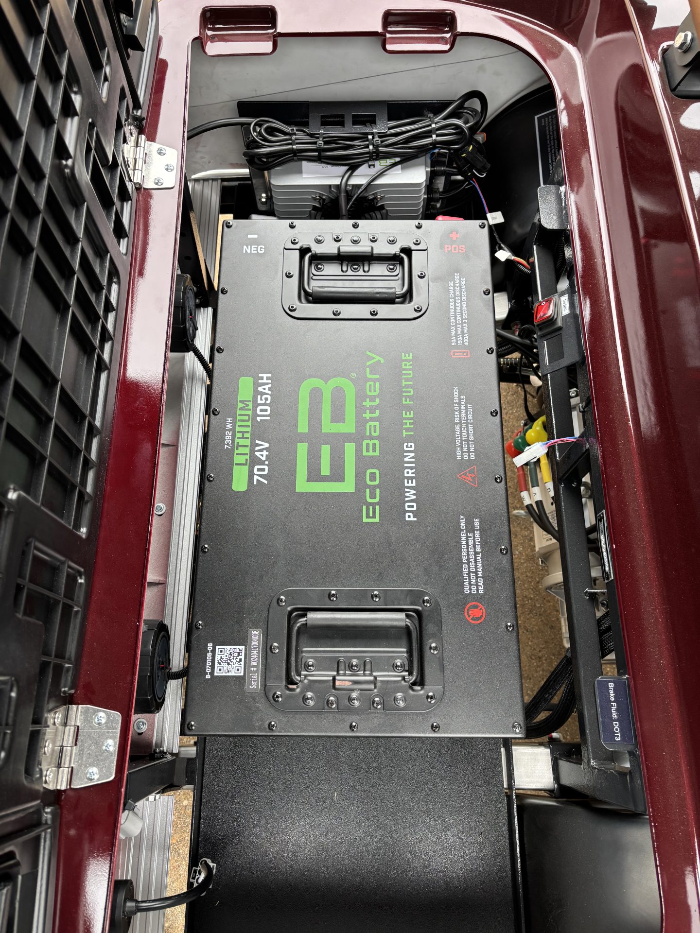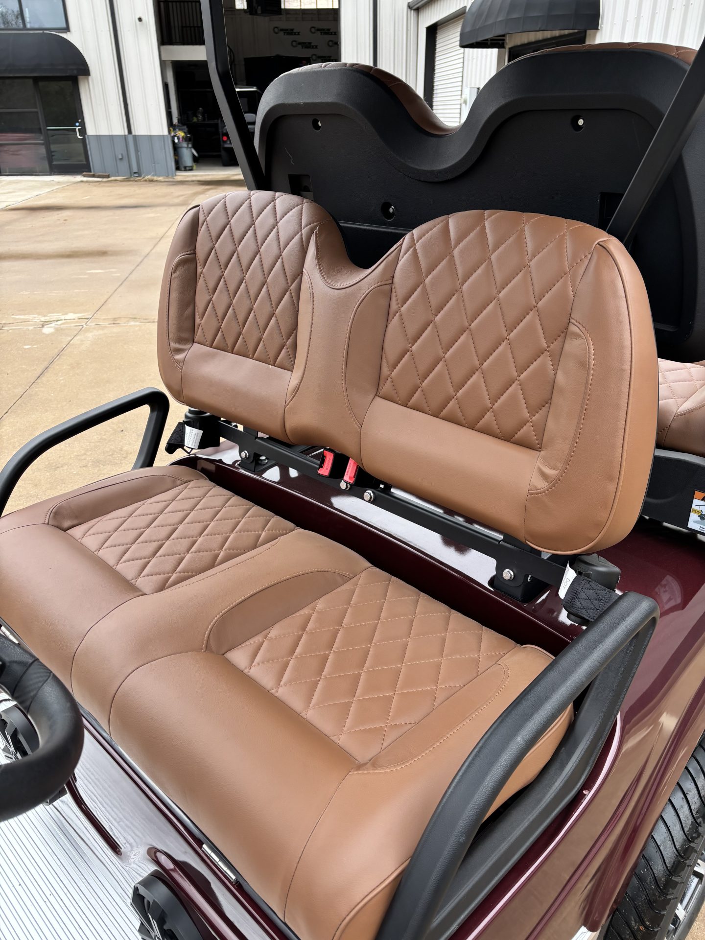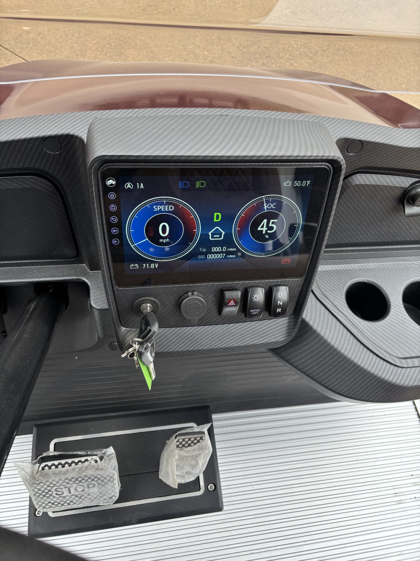 2 Year Full Coverage Warranty (includes Parts AND Labor!) 72 volt-105 amp hour ECO Lithium Battery (includes 8-Year Manufacturer’s Warranty) Onboard Charger for easy access and maintenance AC Power for Increased Torque Aluminum Frame High Quality Metallic Paint in Night Sky (black metallic) Premium Contoured and Handstitched Seats in Black with White Piping & Stitching 12″ DOT-Street Wheel Package Fully Integrated Multimedia Screen in Carbon Fiber Dash (includes all Apple CarPlay features, navigation, and more) Reverse Camera Custom Gussi Steering Wheel LED Head, Projector & Tail Lights Turn Signal + Horn + Brake Lights Premium Carbon Fiber Dash with Storage USB/USB-C Port Retractable Seatbelts for all passengers Side Mirrors Flip-Down Rear Seat with Cup Holders DOT Windshield Roof Safety Grab Handles and more!