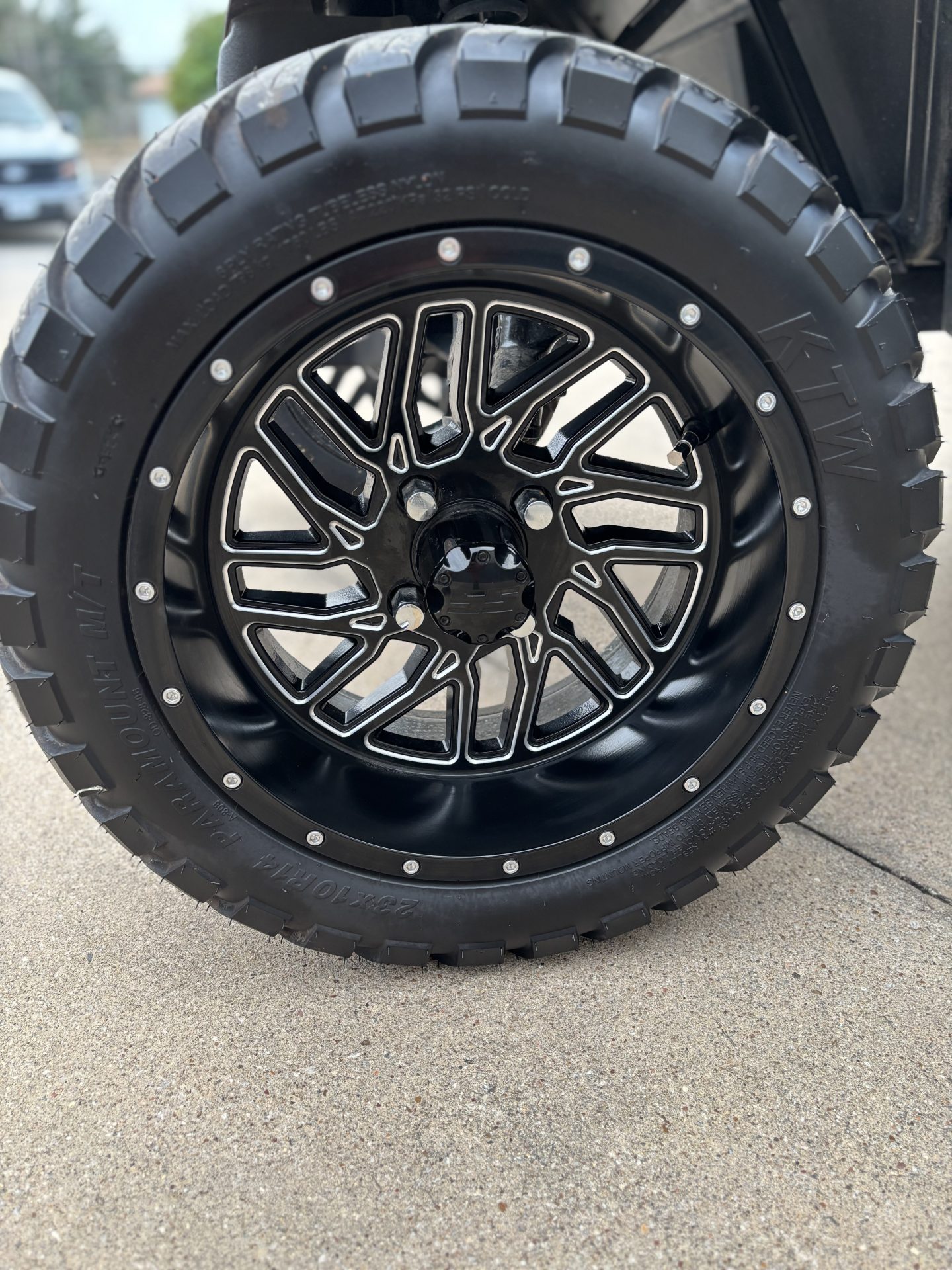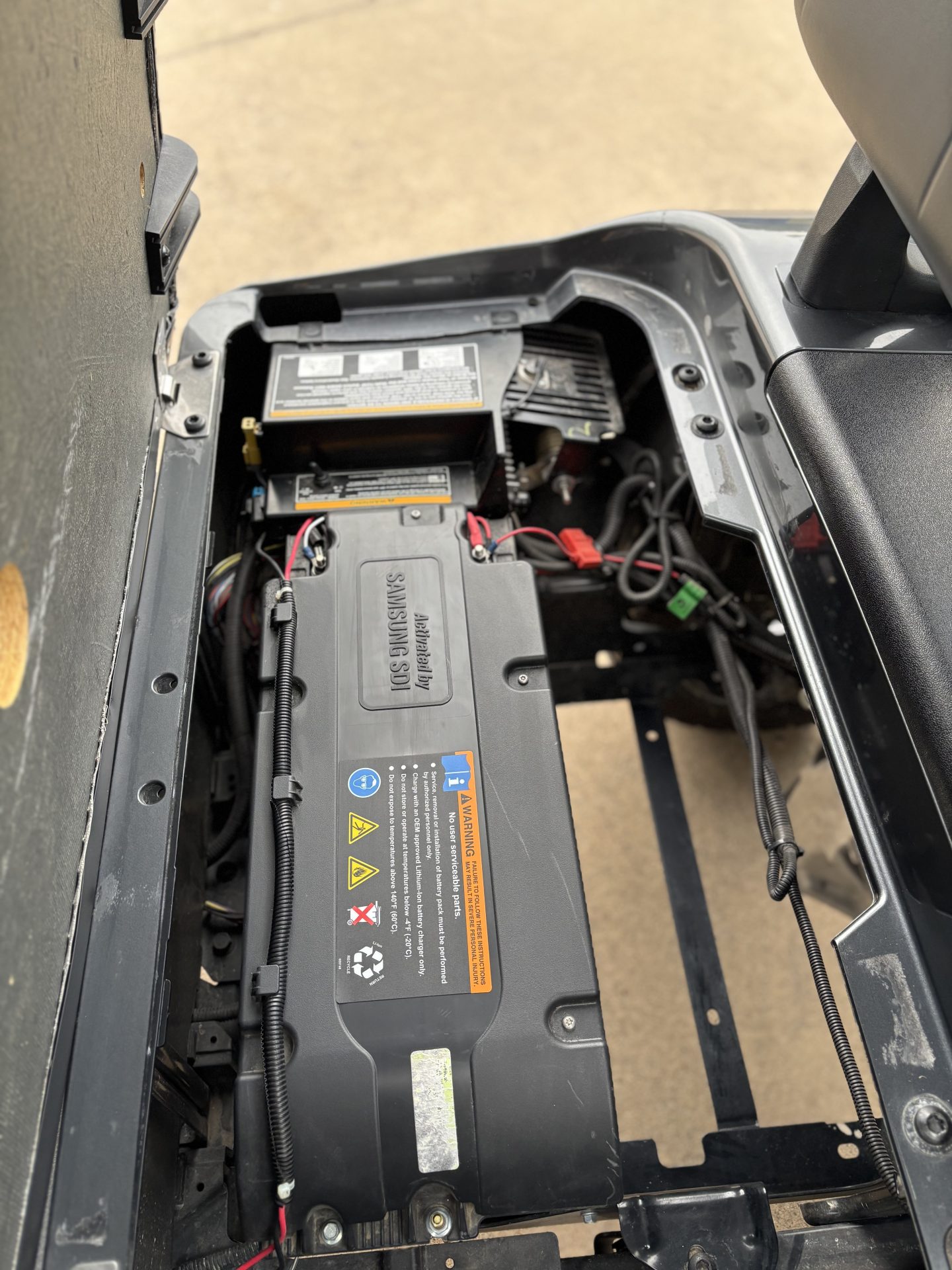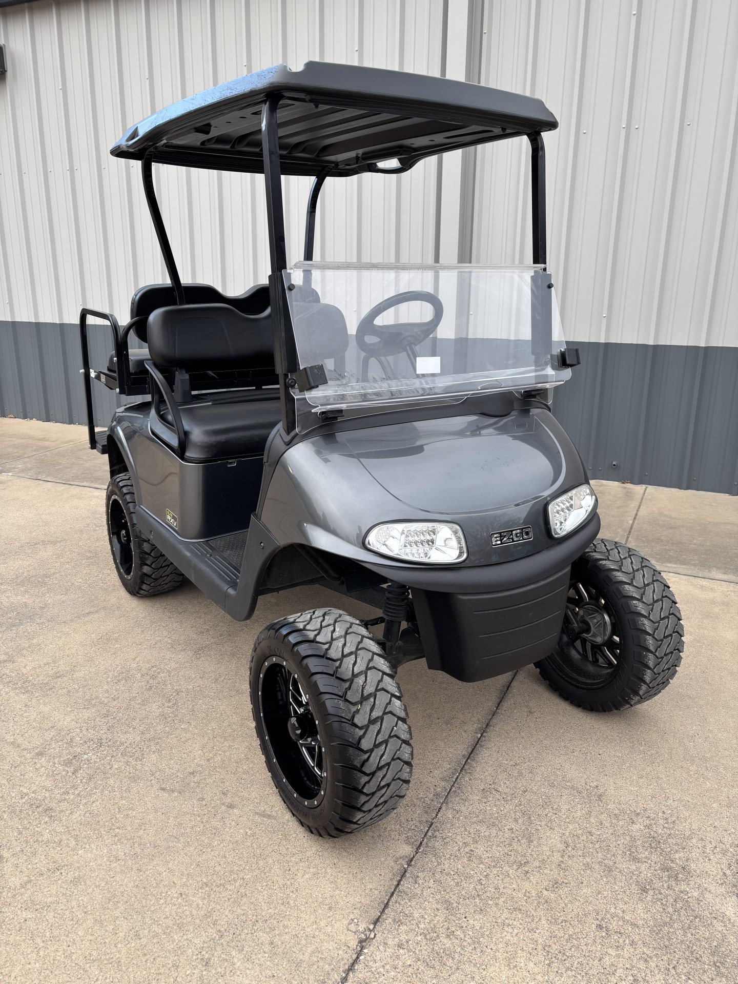 2019 EZGO Elite RXV featuring a Samsung lithium battery. Equipped with headlights, taillights, windshield, rear seat, lift kit, and upgraded wheels and tires. Charger included. Cart is in great condition and runs and drives excellent.